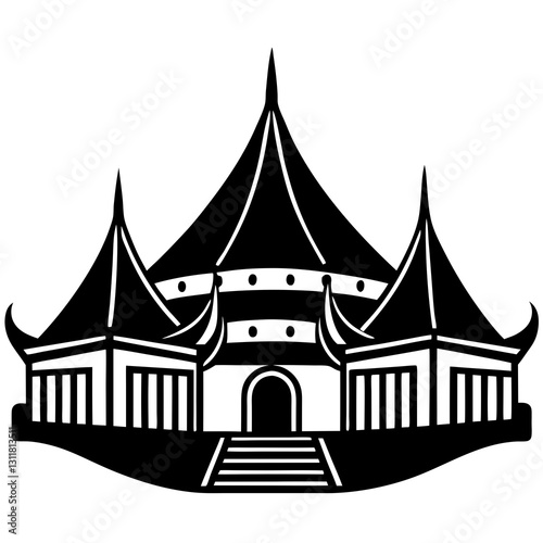 Sketch Vector of Modern Cultural Center with Circular Pavilion Shapes