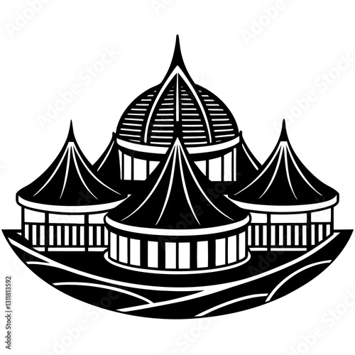 Sketch Vector of Modern Cultural Center with Circular Pavilion Shapes