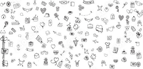Sketchy vector hand drawn doodles cartoon set of Love and Valentine s Day