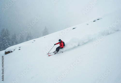 Skier Caught in Sudden Snowfall on Steep Hill