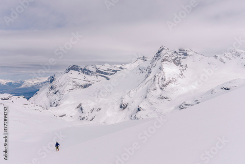 Skiers enjoy a backcountry tour in the Northern Rockies of British Columbia, Canada.