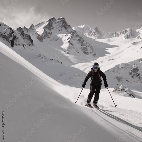 Skiing or snowboarding scenes on steep snowy mountains, capturing the speed and passion