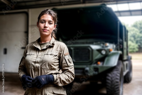 skilled and empowered attractive female mechanic in the military, symbolizing gender diversity and expertise within the armed forces