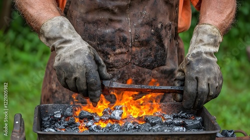 Skilled Blacksmith Working with Glowing Metal in Rustic Forge Environment