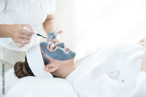 Skin Care. woman are masking her face in a spa salon. Woman with cosmetic spa facial mask.