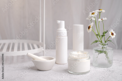 skincare items with flower for beauty routines, or wellness emphasizing clean aesthetics and natural ingredients.