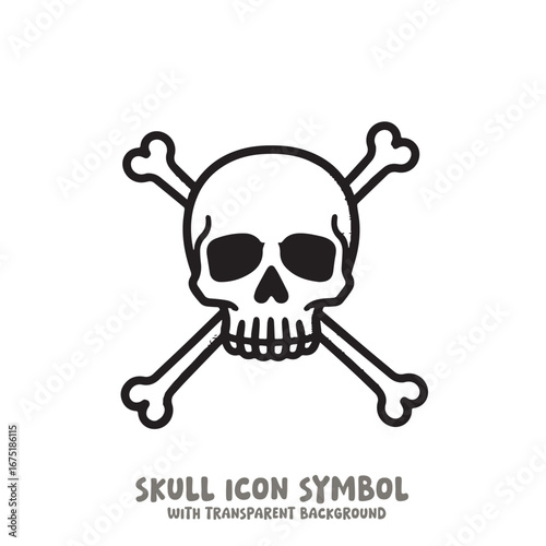 Skull and Bone Icon Symbol Vector Illustration in Black and White
