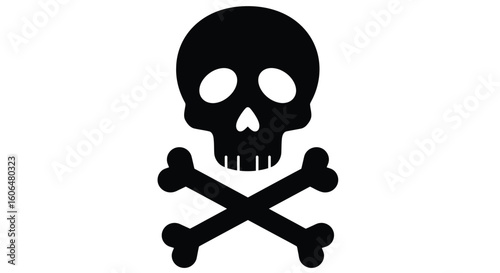 Skull and Crossbones Icon – Flat Black Silhouette Vector