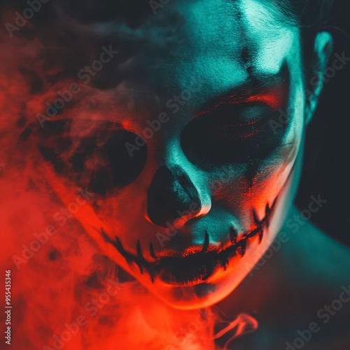 Skull makeup creates an eerie atmosphere during Halloween night