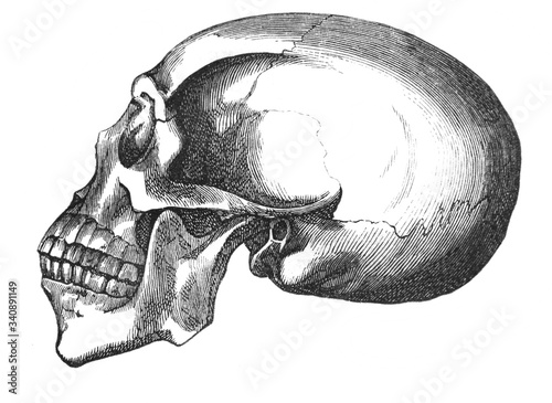 Skull of African man in the old book The Human, by K. Fogt, 1866, St. Petersburg
