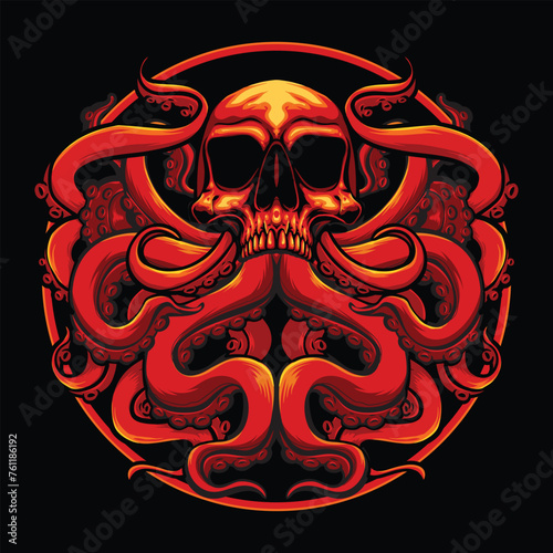 skull red octopus logo vector