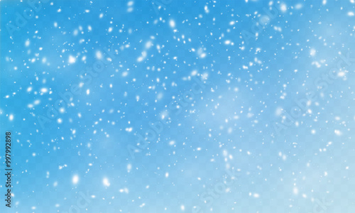 Sky Blue,snowflakes Background,Horizon Winter snowy sky, Vector landscape nature sunrise in Winter, Spring panorama banner white snow over blue sky. Snowflakes. Heavy snowfall. Christmas snowflakes.