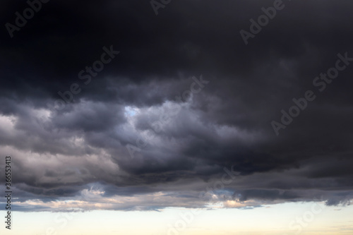 Sky covered with dark storm clouds. Dramatic background for weather before rain