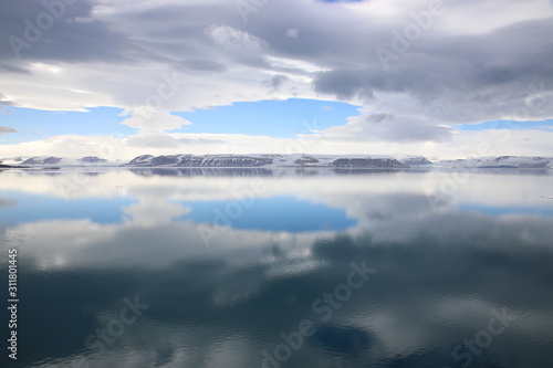 Sky reflection in the water surface of Arctic ocean around Spitsbergen, Svalbard