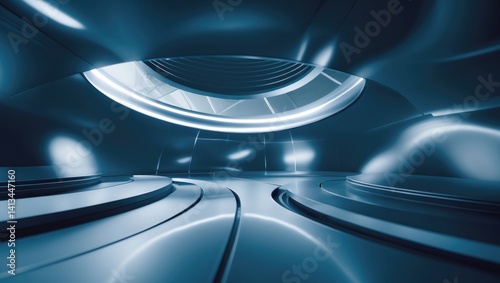Skylight: Abstract Modern Dome Architecture. Close-up of the Interior. Round Ceiling and Roof Structure. Minimal Futuristic Office Background. Geometric Pattern of Concentric Circles.