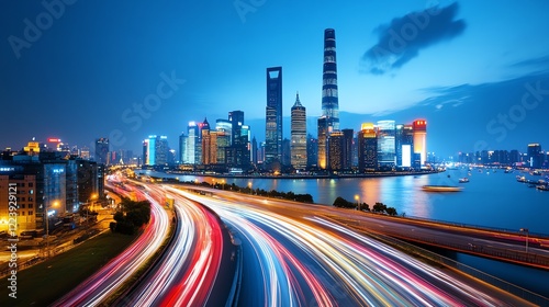 Skyline framed by bright firework trails, intricate patterns in vivid colors lighting up the night above bustling streets