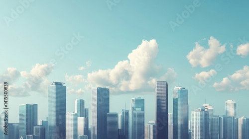 Skyline Serenity: Minimalist Urban Landscape with Pastel Sky and Clouds