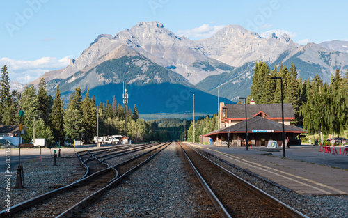 Skylines of city of Banff surrounded by rocky mountains, Calgary, Canada
