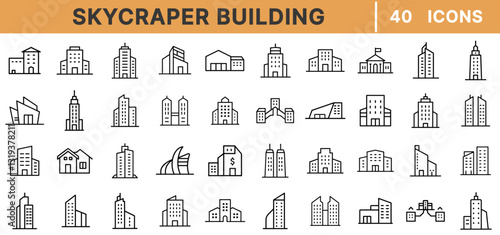 "Skyscraper and Building Icons Bundle - Architecture, Skyscraper, City, Construction, Building, Tower, Office, Urban, Modern Design"