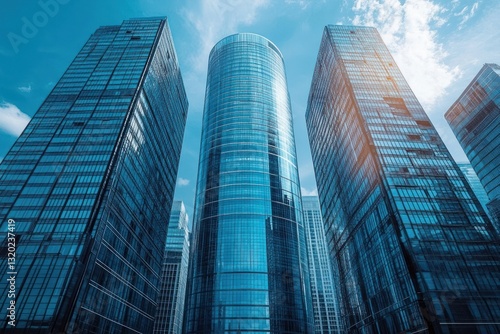 Skyscrapers in Moscow City District on a Bright Sunny Day Modern Architecture Urban Landscape