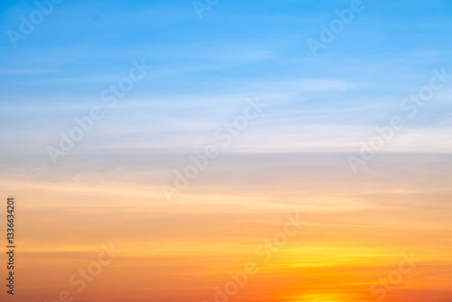Sky,sunset, beautiful , luxury soft gradient orange gold clouds and sunlight on the blue sky perfect for the background, Sunrise on morning or everning in winter warm time ,Twilight summer,silhouette