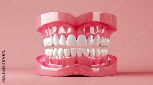 Sleek 3D model of dental prosthesis with shining braces, positioned against a sleek, solid color background for a professional look