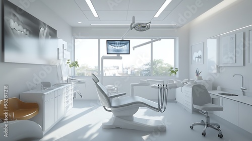 Sleek and Modern Dental Office Interior Design with Advanced Equipment and Bright Lighting