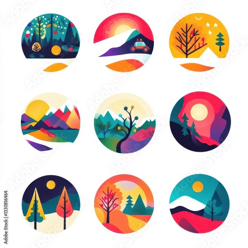 Sleek and Modern Round Holiday Icon Set with Vibrant Vector Illustrations Perfect for Festive Digital Design and Creative Branding Projects
