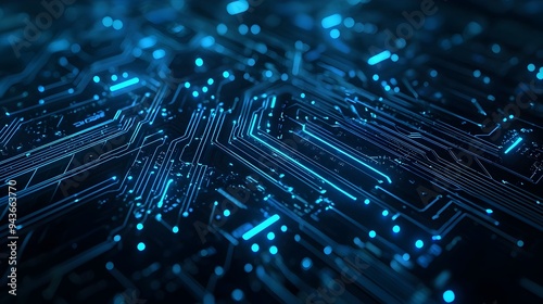 Sleek and Sophisticated Abstract Blue Circuitry Digital Design