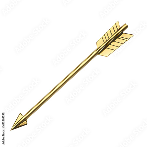 Sleek Arrow with Reflective Finish in Metallic Gold Isolated on Transparent Background