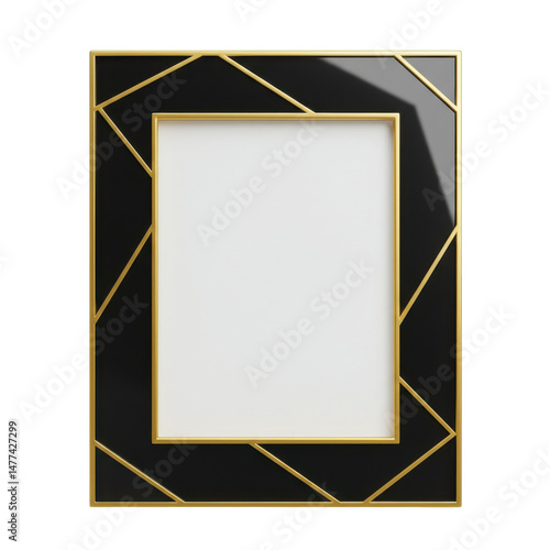 Sleek black frame w/ gold lines in geometric design. Empty center awaiting a cherished photo/artwork