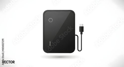 Sleek black portable power bank illustration for on-the-go device charging, featuring essential backup battery technology for modern mobile lifestyles and travel convenience