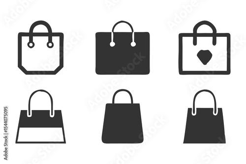 Sleek Black Shopping Bag Vector Icon Set for Retail and Ecommerce Design Projects