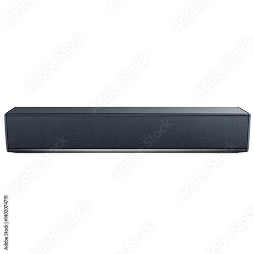 Sleek black soundbar studio quality sound isolated on on transparent background