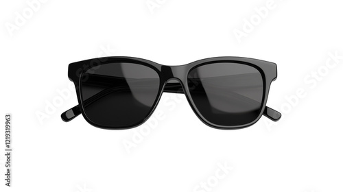 Sleek black sunglasses displayed against on a transparent background, emphasizing their stylish design and reflective lenses.