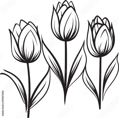 Sleek Black Tulip Flowers Bunch Vector Logo Minimalist Tulip Bunch Vector Logo Black Outline