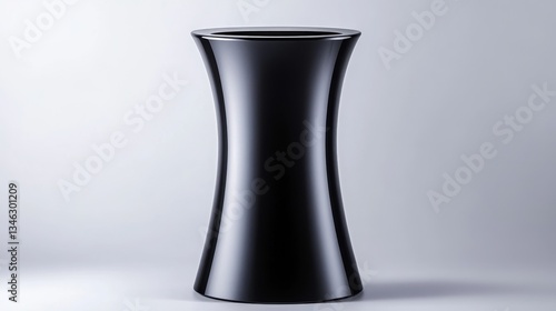 Sleek black vase with a modern design against a soft gradient background, showcasing elegance