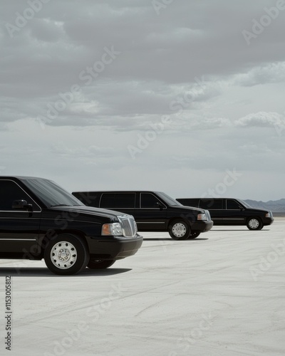 Sleek black vehicle minimal funeral procession in urban environment capturing serenity and respect