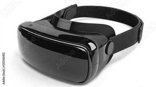 Sleek black virtual reality headset positioned on a white surface, showcasing modern technology design