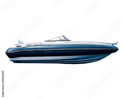 Sleek Blue and White Motorboat on Background speedboat yacht isolated on a transparent background