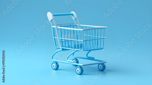 Sleek Blue Minimalist Shopping Cart for Retail and Groceries