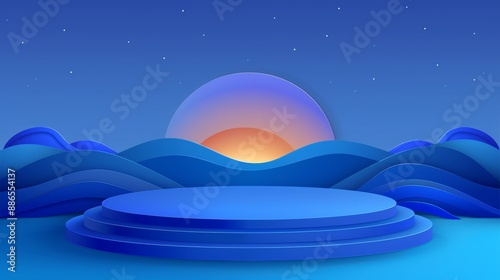 Sleek blue stage design minimalist podium display on clean background for product showcase