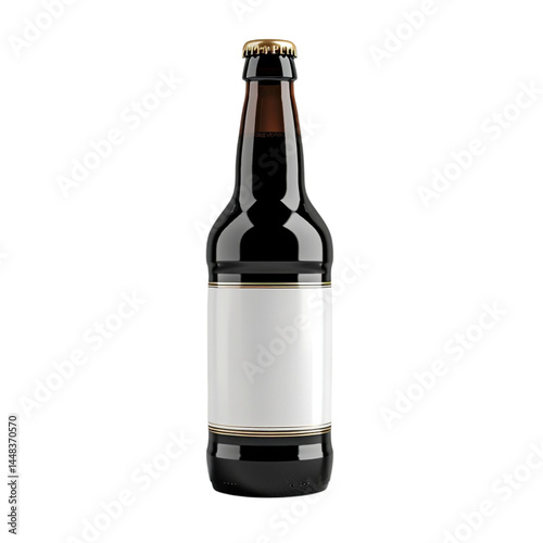 Sleek Dark Brown Glass Beer Bottle with White Label Mockup on Transparent Background