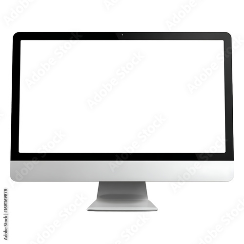 Sleek desktop computer with a wide screen and a minimalist design set against a transparent background ideal for showcasing content