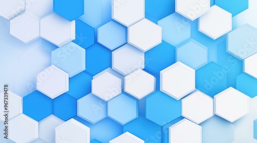 Sleek flat illustration of white and blue hexagons, ideal for tech and health presentations with a scifi flair.