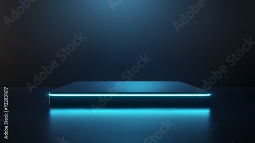 Sleek Futuristic 3D Podium with Reflective Surface Floating in a Dark Ambient Space