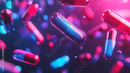 Sleek Futuristic Pharmaceutical Hologram with Floating Abstract Capsules