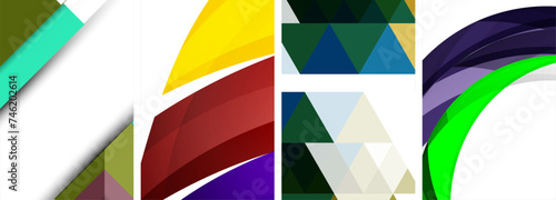 Sleek geometric abstract backgrounds composed of circles, lines, and triangles, exuding minimalist sophistication for wallpaper, business card, cover, poster, banner, brochure, header, website