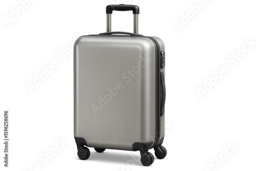 Sleek gray trolley suitcase resting against transparent backdrop, representing contemporary travel convenience and minimalist design