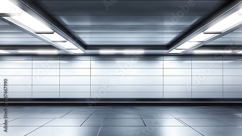 Sleek interior design modern architectural space with metallic surfaces and bright lighting